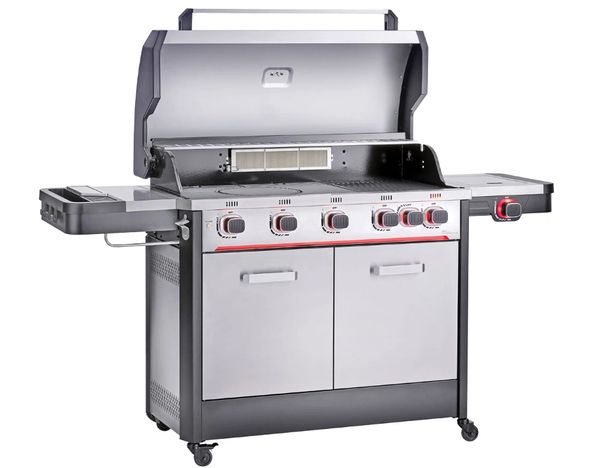 This high-quality stainless steel gas barbecue is designed for powerful, controlled outdoor cooking with premium features throughout. With five main burners, an infrared rear burner, and a recessed side burner, it gives you total flexibility whether you’re grilling, roasting, or searing at high heat.